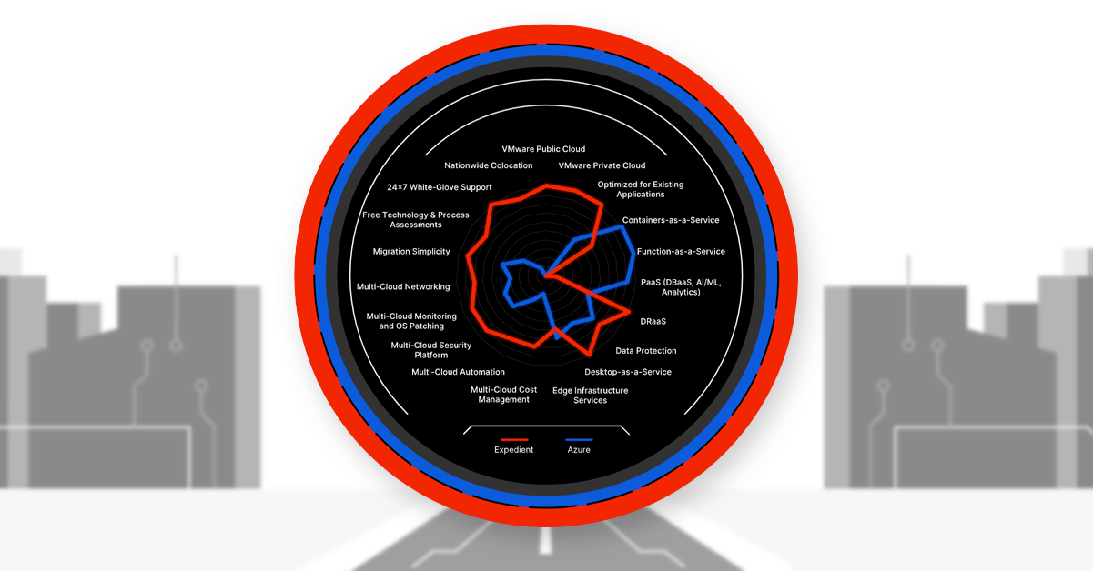 Azure is optimal, particularly for new cloud-native applications. Expedient is a robust companion to Azure that excels at bringing the rest of your essential infrastructure into a cloud operating model. Together, you have an unbeatable combination for your infrastructure transformation – and you’ll eliminate the need to sacrifice speed, cost, or quality.